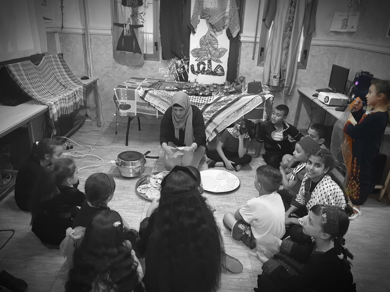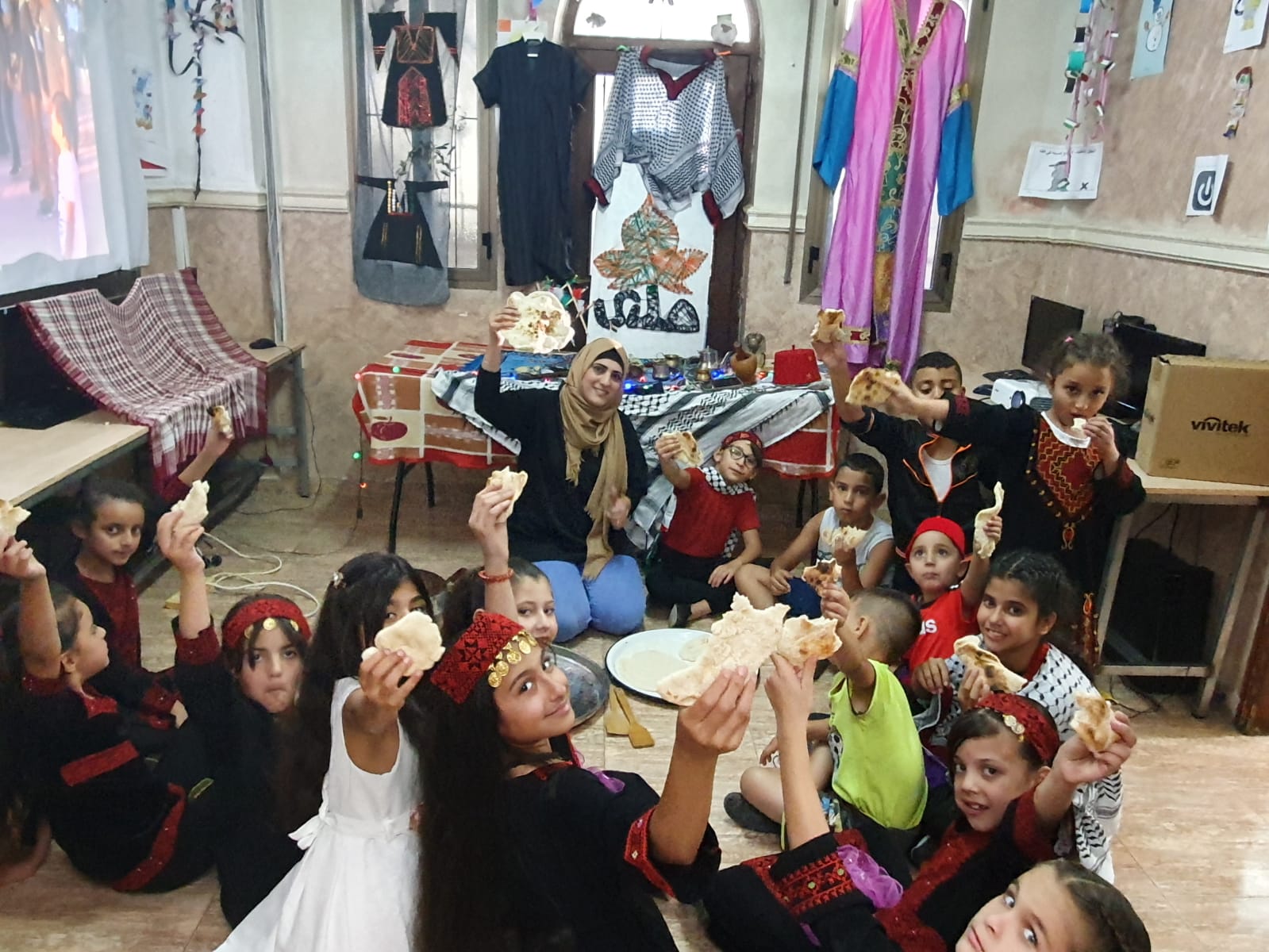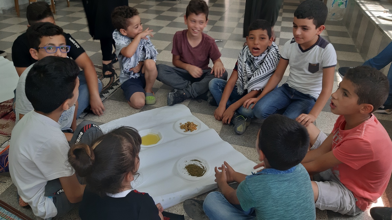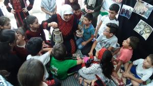 The children played popular games such as “Seven Stones, Tug of War, and Hide and go seek”. They prepared a Palestinian cuisine, where the children had a Palestinian breakfast, which included Taboon bread, thyme, oil and olives.