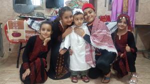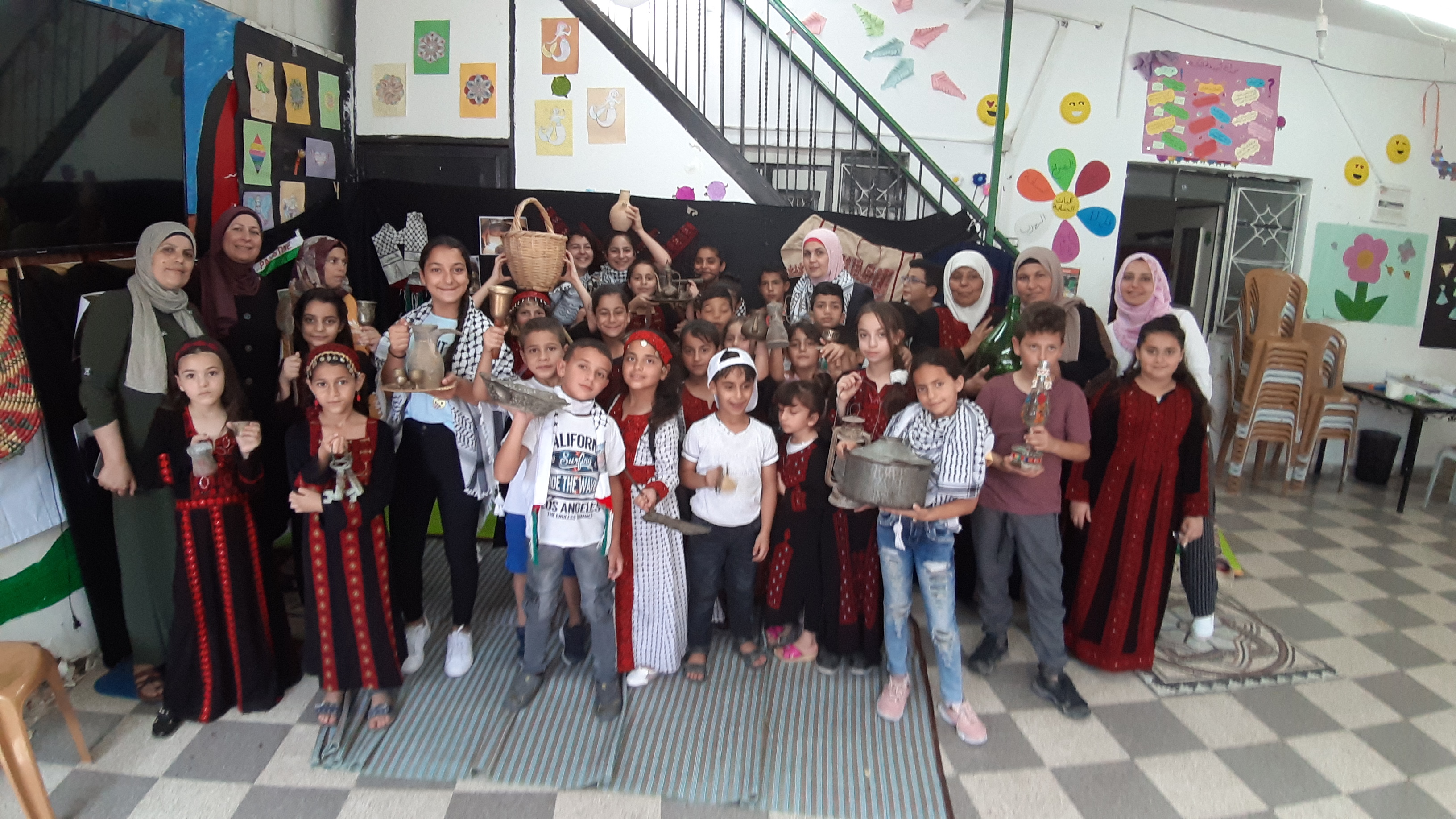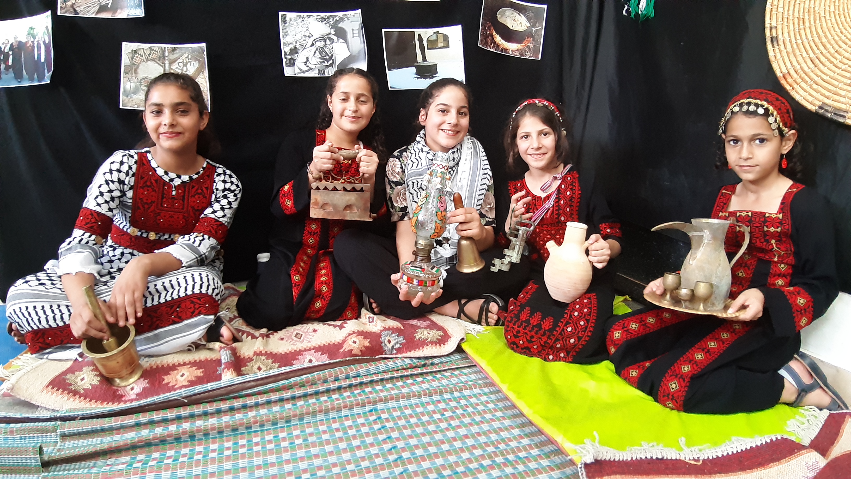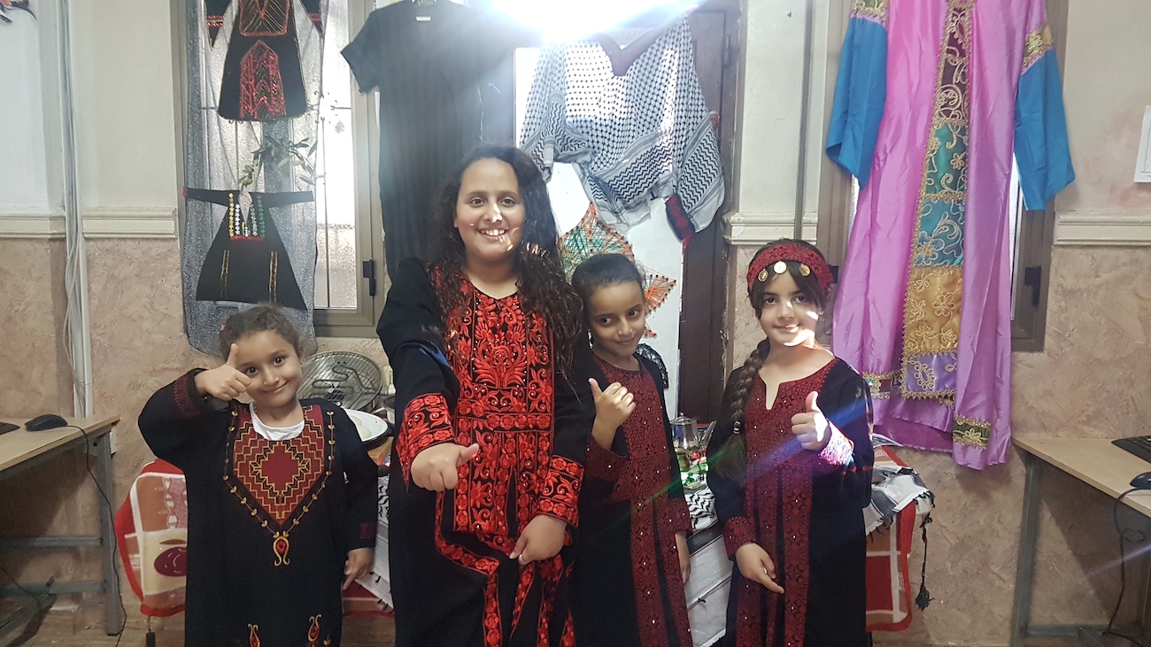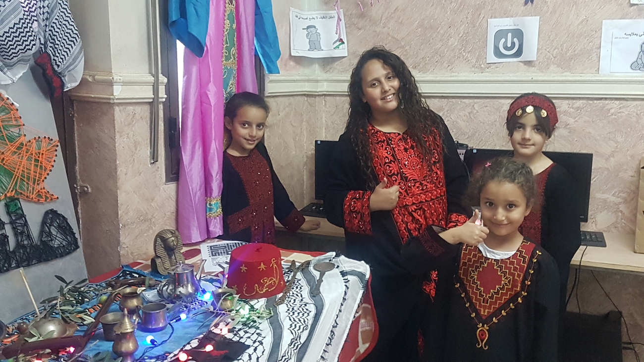 It is worth mentioning that the children had worn the Palestinian attire (the dress for females and the robe (qumbaz) for males) and participated in presenting traditional tools that they had brought from their homes.