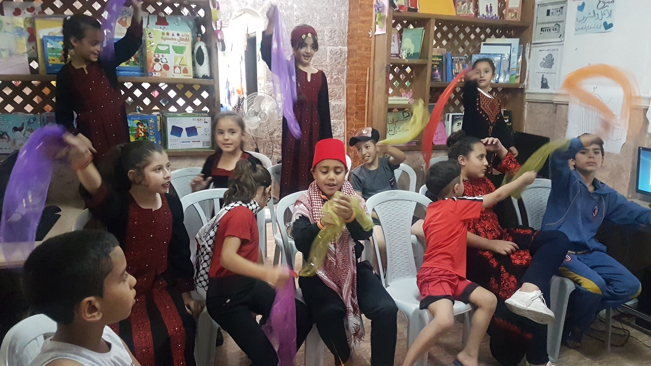 The children danced to the tones of traditional Palestinian songs and to dabkeh songs to emulate old Palestinian weddings.