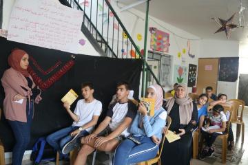 Accordingly, 10 screenings of films from the “I am a Palestinian” series were organized at the Center's headquarters in Silwan in the presence of different segments of society, mainly youth. The first was “Al-Ra’iya” (the Shepherd), directed by Fidaa Ataya, which tells an imaginary story about the areas of “Wadi Al Malih and Ein Al Hilweh” in the northern Valley which are exposed to threats from the occupation, and expresses the lives of Palestinian women who work in grazing and agriculture, who suffer the pain of losing land and water resources.
